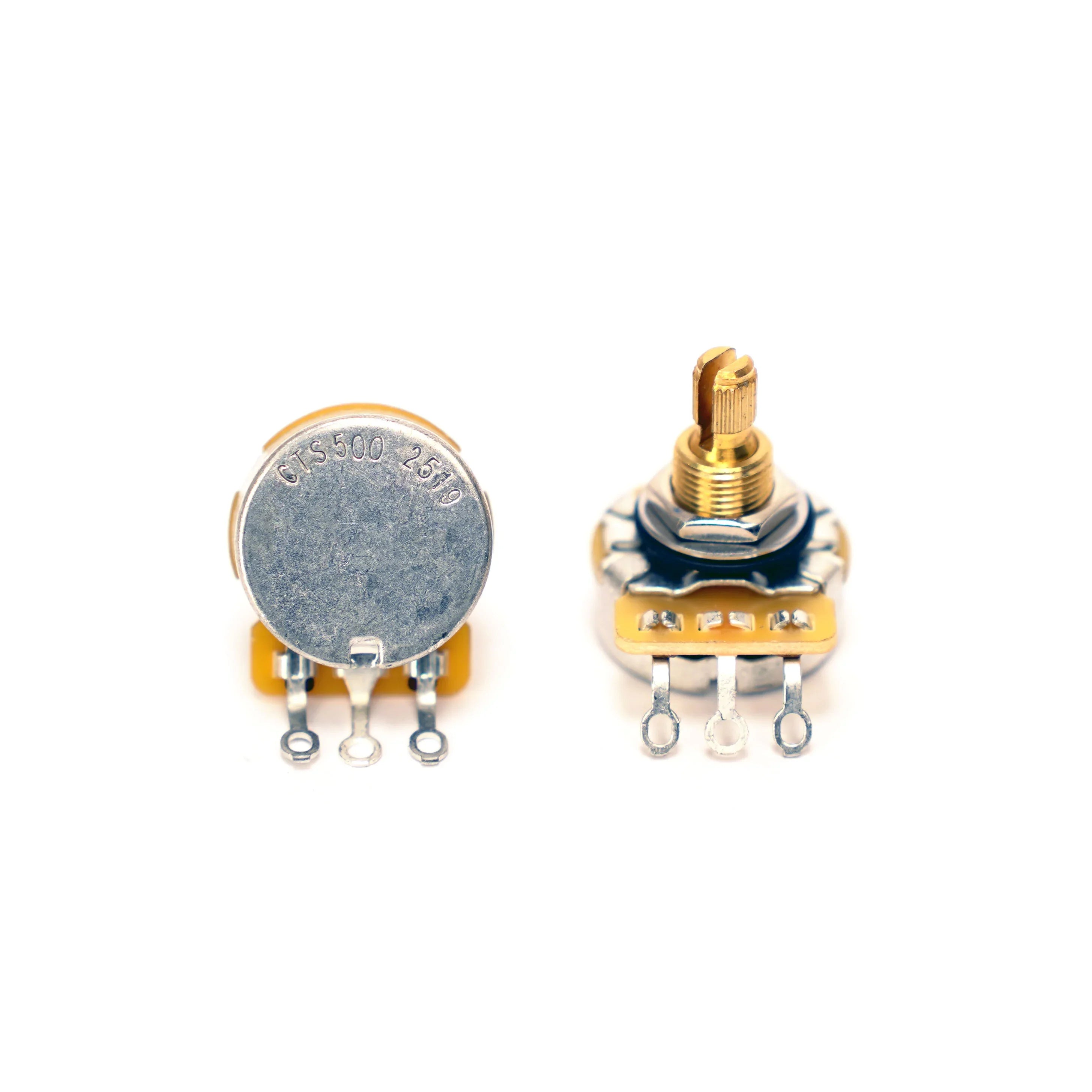 Sold Individually.  These are custom spec CTS pots, based on their guitar series 450G pots. Spec with a 9% tolerance these measure around 275k which are perfect for single coil instruments. These pots have a 3/8" bushing which is perfect for guitars with a thin top, t-style control plate, or pickguard mounted pots.