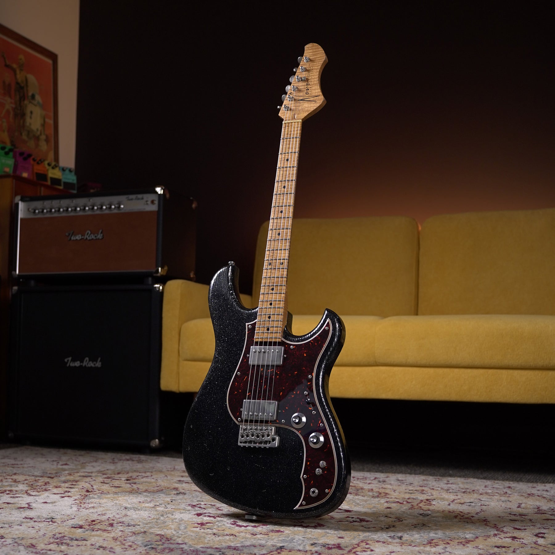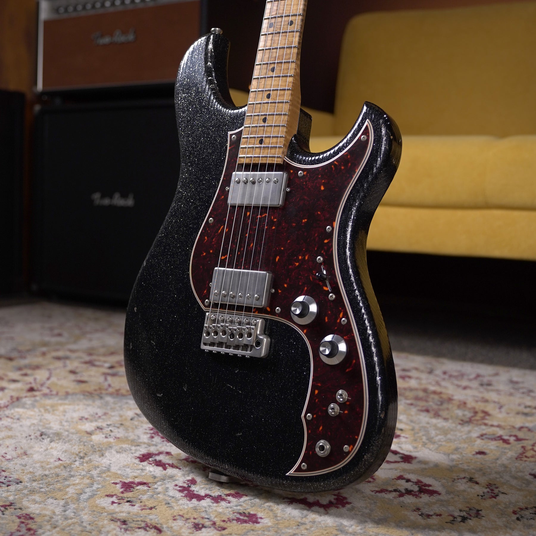This Starry Night Idris HH from Novo will surly be the star of the show. Rockin' with two Fralin Modern PAF humbuckers, wrapped by a gorgeous 4 ply dark tortoise shell pickguard this guitar is an eye and ear catcher.