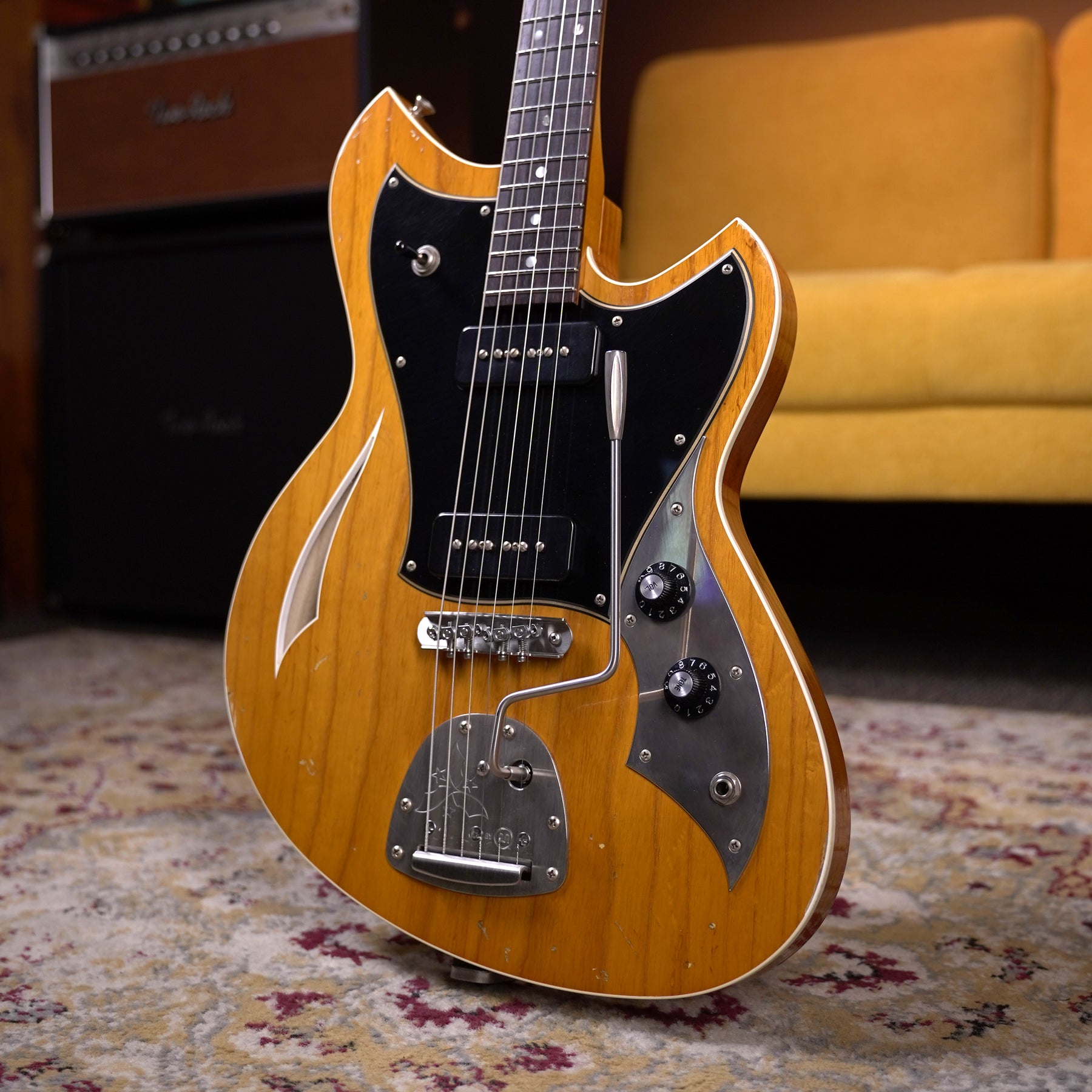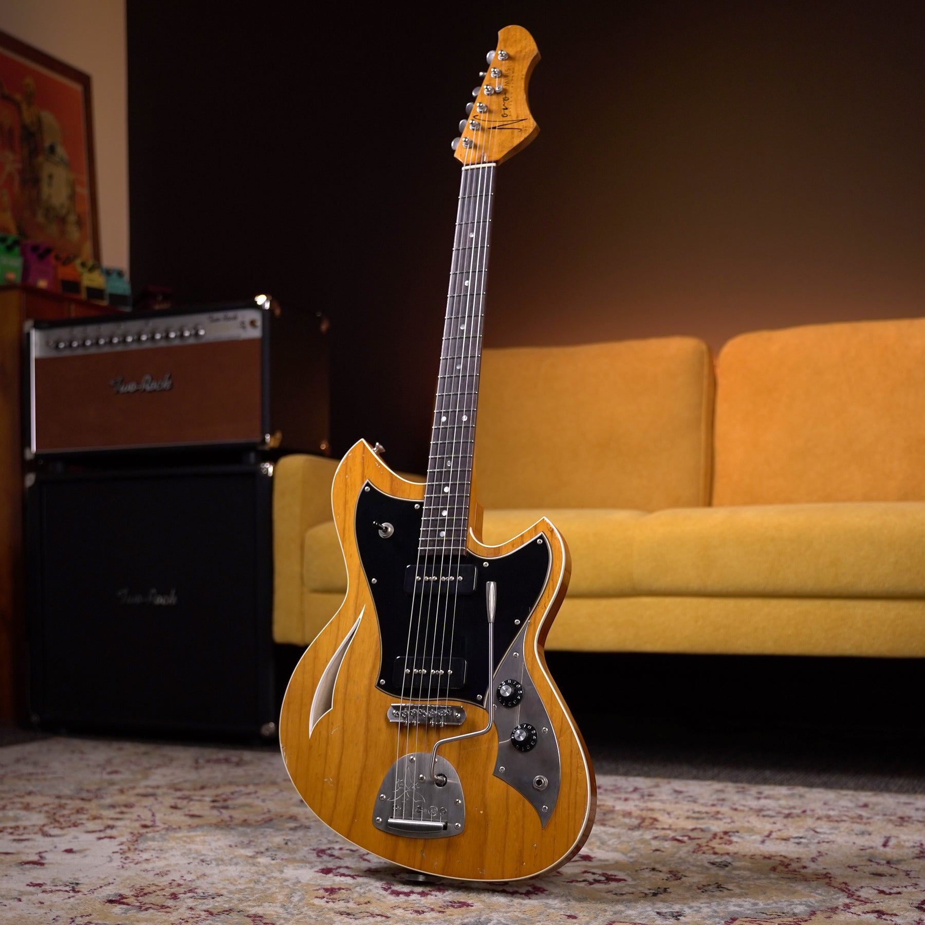 This example features the amazing Amber finish - letting the beautiful swamp ash shine with all its natural glory. It's a bad-ass musical machine, ready for all your fancy chords and ripping solos.
