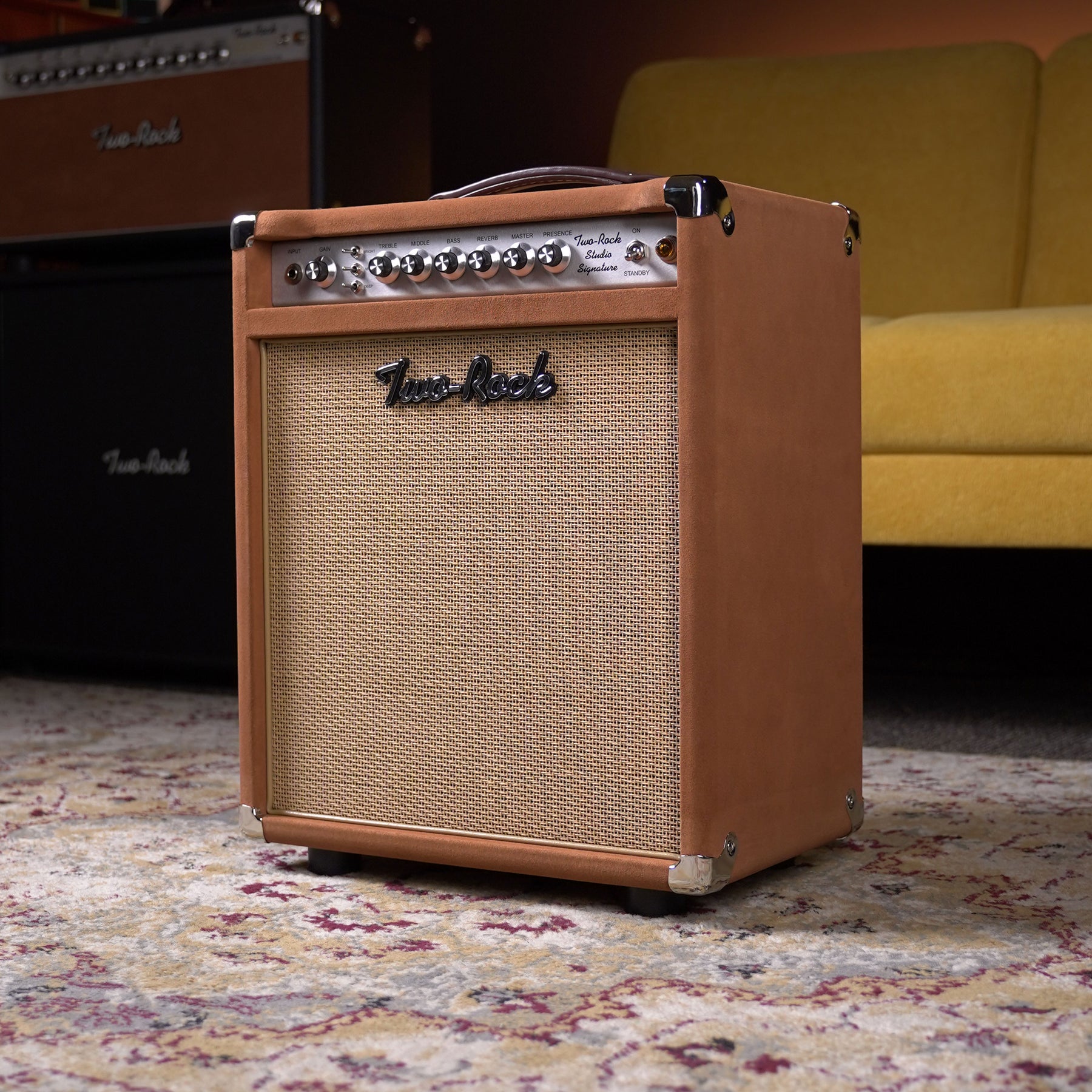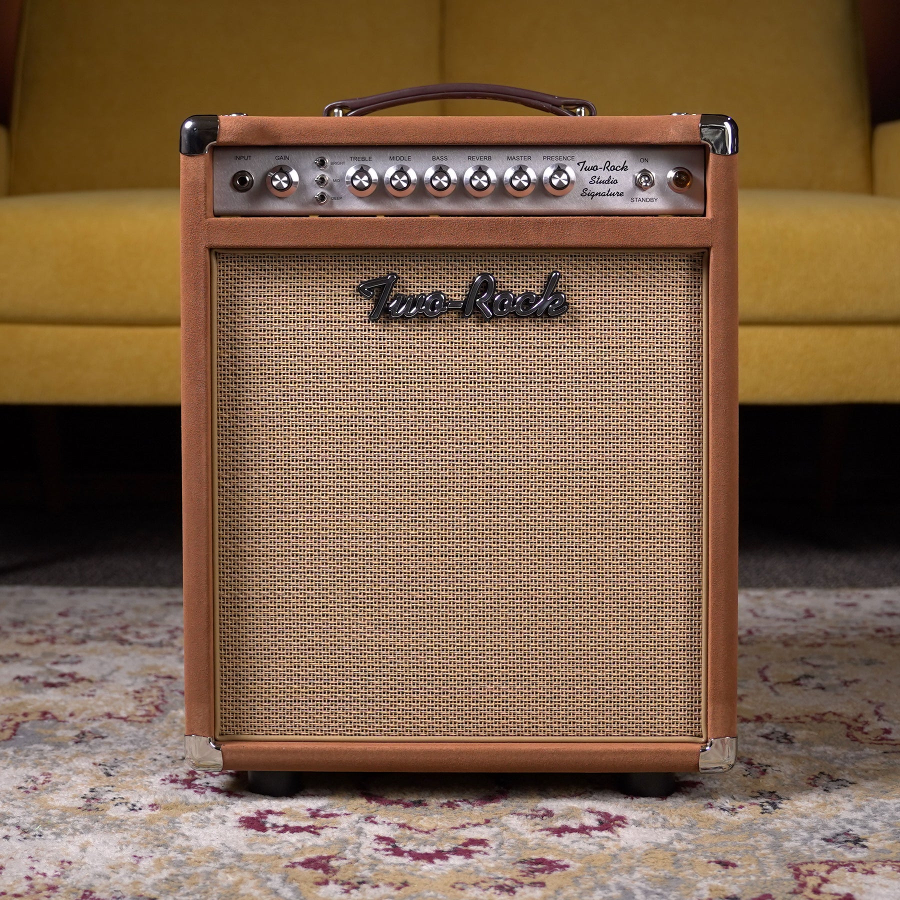 The first thing everyone says when they try a Studio Signature amp is, "Wow!" This 1x12 combo amp may look small but it's built with the same components and attention to detail that is synonymous with Two-Rock. We like to think of this as the little brother to the Classic Reverb Signature, the Studio Sig has a straight forward control layout that lets you dial in a sound quickly. Featuring Bright, Mid and Deep switches with a Gain Structure switch on the back panel you almost don't need to touch the 3 Band tone control knobs, but doing so you'll quickly hear the attention to detail that goes into these amps.